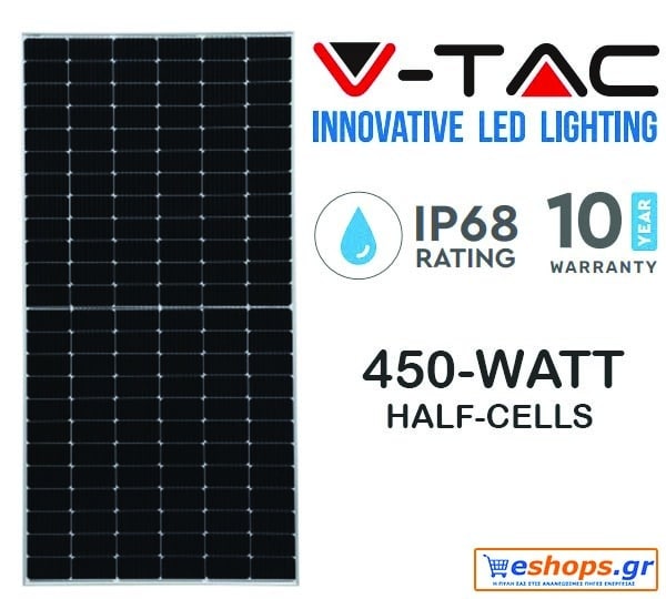 net billing, Φωτοβολταικό Πάνελ V-TAC 11353 450W Μονοκρυσταλλικό half-cells για φωτοβολταικά σε στέγη για νετ μετερινγκ net metering 5kw -10kw φωτοβολταικo για σπίτι net billing,
