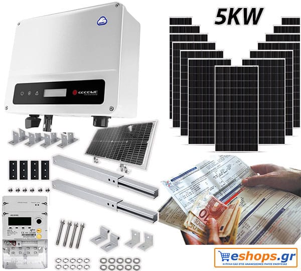 5kw net billing GOODWE GW5000D-NS με φωτοβολταϊκό με 440 watt/ 460 watt half cells TOPCON 30 χρόνια εγγυημένη απόδοση Φ/Β πανελ Μονοφασικό-πλήρες πακέτο