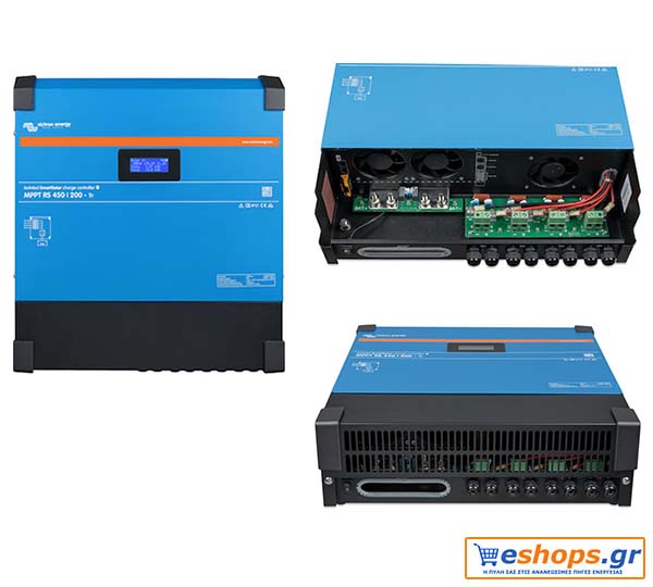 Ελεγκτής ηλιακής φόρτισης εξαιρετικά γρήγορης παρακολούθησης μέγιστης ισχύος (MPPT) : Το MPPT RS SmartSolar είναι ένας ελεγκτής ηλιακής φόρτισης 48 V με είσοδο Φ/Β έως 450 VDC και έξοδο 100 A ή 200 A. Χρησιμοποιείται σε ηλιακές εφαρμογές εντός και εκτός δικτύου όπου απαιτείται μέγιστη ισχύς φόρτισης μπαταρίας.